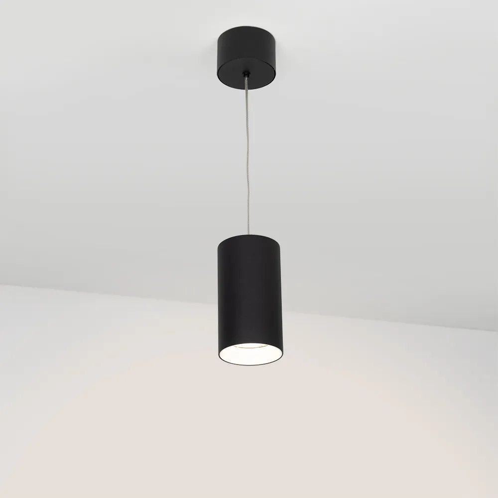 Подвесной светильник 15Вт, черный круглый корпус, белая вставка, металл. Цвет ТЕПЛЫЙ БЕЛЫЙ 3000K, св.поток 1100лм, CRI(Ra)>80, угол 40°. Размер Ø85x155мм. Встроенный драйвер PRI:220-240VAC, SEC:DC 500mA 23-36V 15Вт.