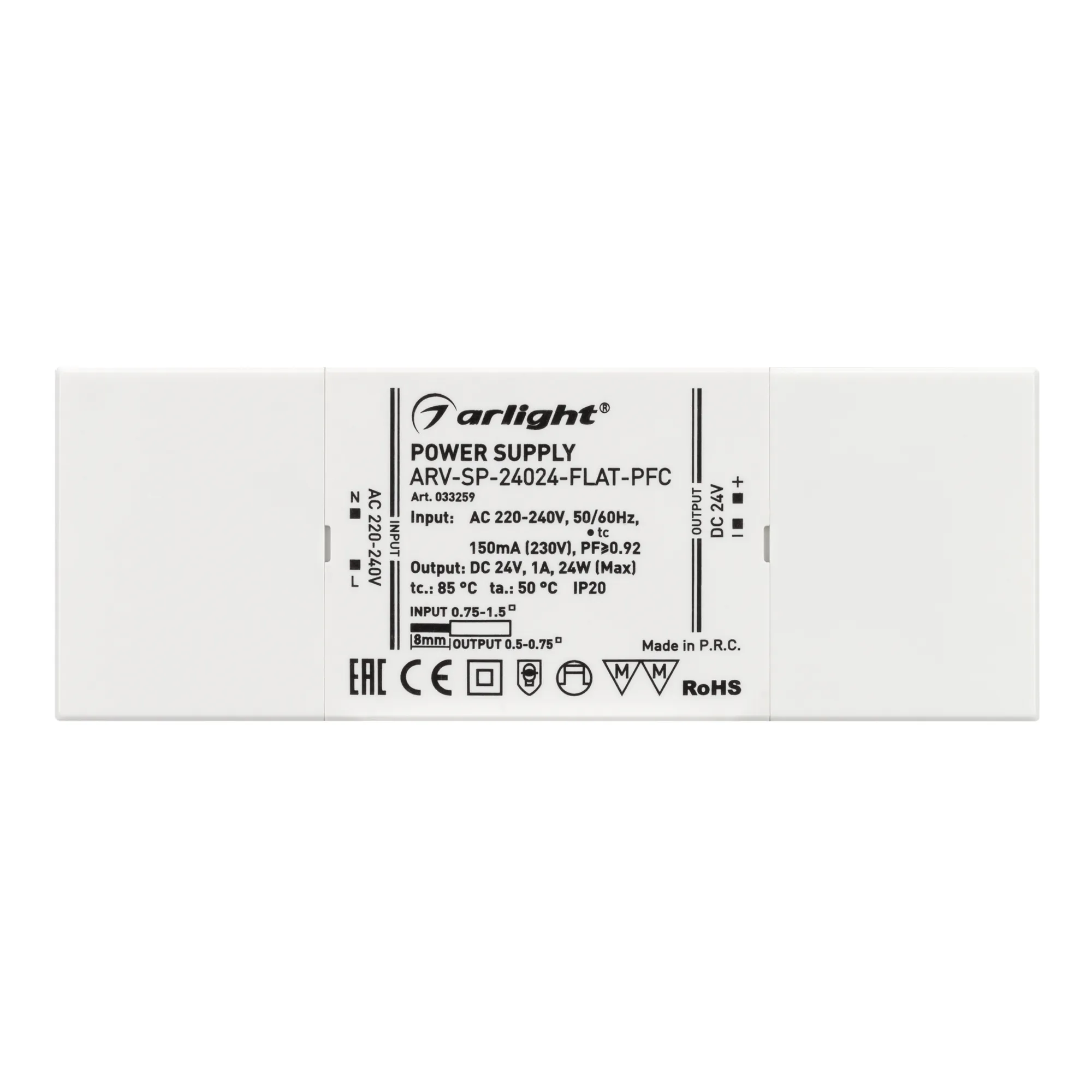 В магазине Мельковский Свет Вы можете купить "Блок питания ARV-SP-24024-FLAT-PFC (24V, 1A, 24W) (Arlight, IP20 Пластик, 5 лет)"