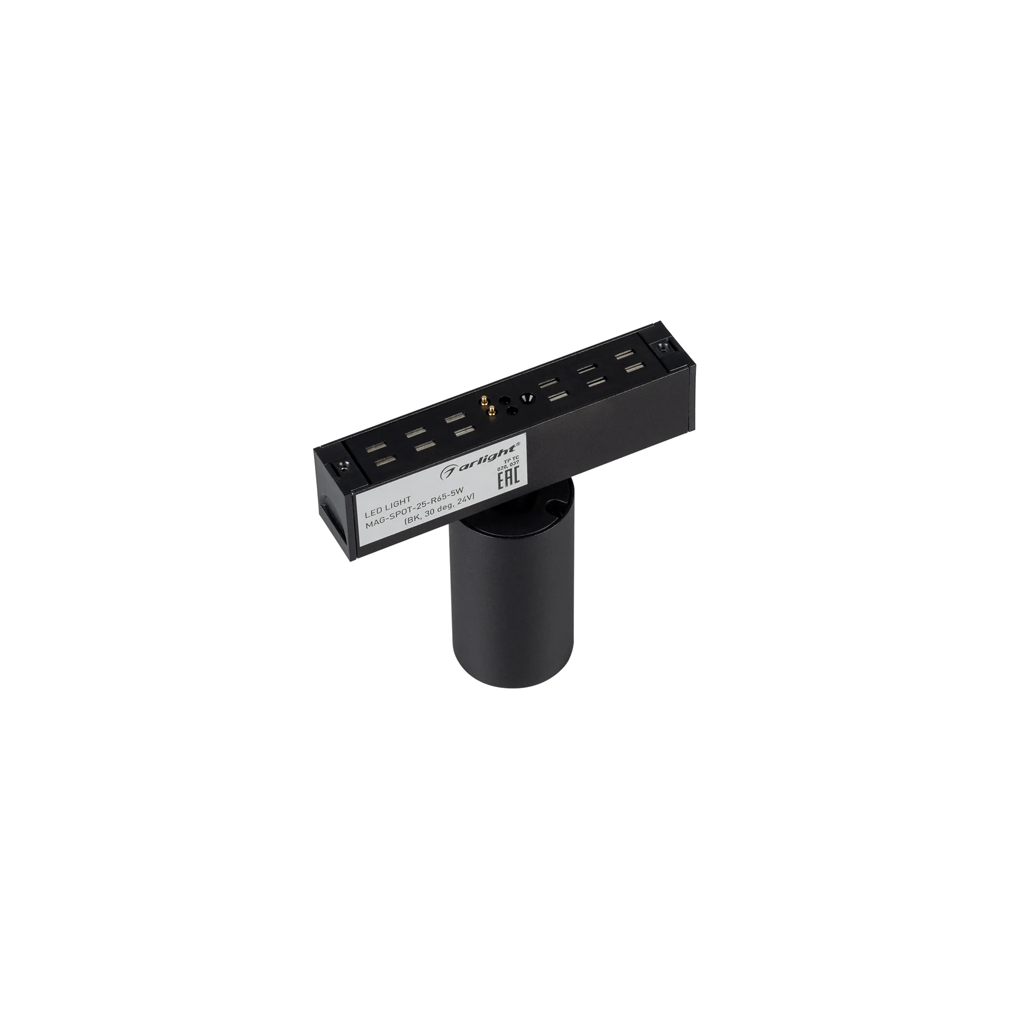Светильник поворотный для магнитных треков шириной 25 мм, 5 Вт. Цвет свечения ТЕПЛЫЙ 3000K, световой поток 350лм, угол 30°, CRI>90. Корпус прямоугольный, металл, цвет черный, IP20. Размеры LxWxH 100x20x95 мм. Входное напряжение DC24V, мощность 5 Вт. Драйвер DС24V/AC230V поставляется отдельно.Диаметр светоизлучающего модуля 35 мм. Диммируется только с 026407, 027633.