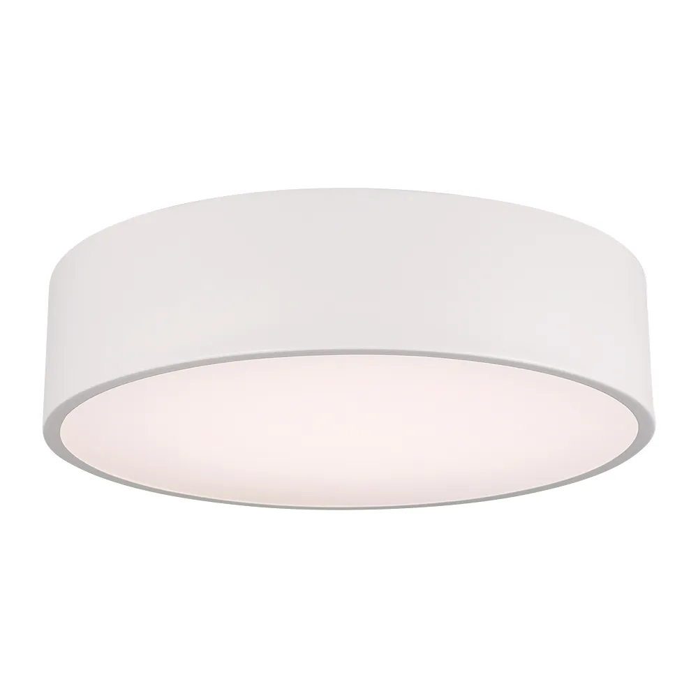 Накладной интерьерный светильник. Мощность 25 Вт, св. поток 2250 лм, 90 лм/Вт, дневной 4000 K, CRI>80, угол 120°, напряжение питания 230 В. Белый круглый корпус из алюминия, степень защиты IP20. Размер: диаметр 400 мм, высота 100 мм. Монтаж накладной. Драйвер 30-42 В, 750 мА, пульсация <5%.