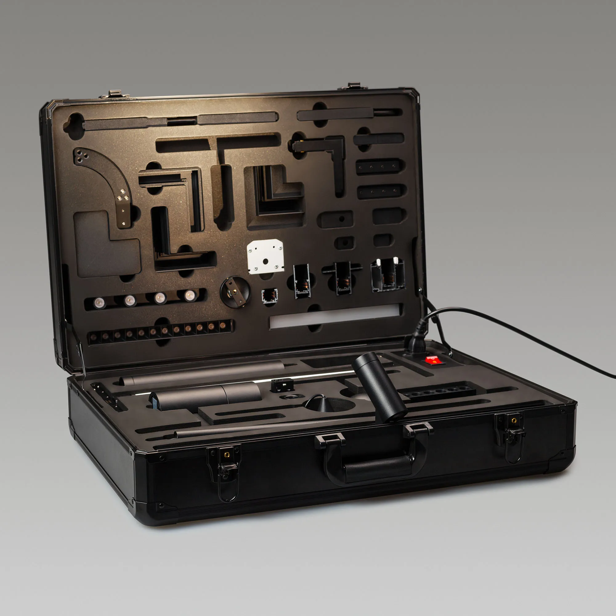 Демо-кейс для демонстрации компонентов магнитной системы MAG-ORIENT с возможностью электрического подключения светильников.