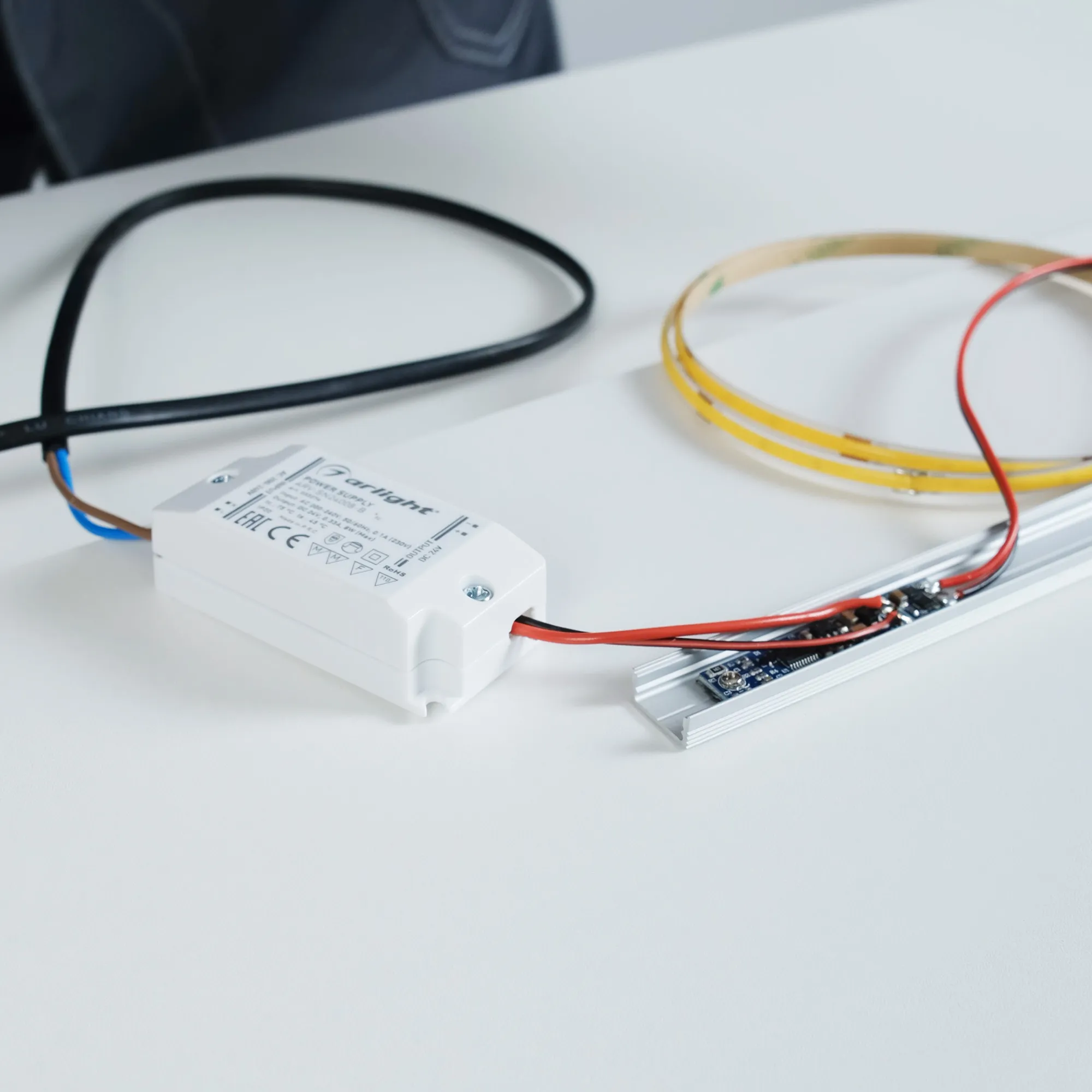Сенсорный (емкостной) диммер для светодиодной ленты (ШИМ), встраиваемый в алюминиевый профиль. Питание/рабочее напряжение 12-24VDC, максимальный ток 3A на канал, 1 канал, максимальная мощность 36-72W. Габариты 55x10x4,5 мм. Диммировать можно в любом месте профиля. Включение/выключение и диммирование происходят прикосновения рукой в любом месте профиля. Диапазон диммирования 10-100 %. Имеется функция сохранения текущих настроек при выключении питания. Рекомендуемая длина подключения монолитного профиля до 5м. При использовании 2-ух профилей требуется жесткое электрическое соединение между ними. Корректно работает с анодированным профилем и профилем без покраски. С крашенным профилем наблюдается некорректная работа.