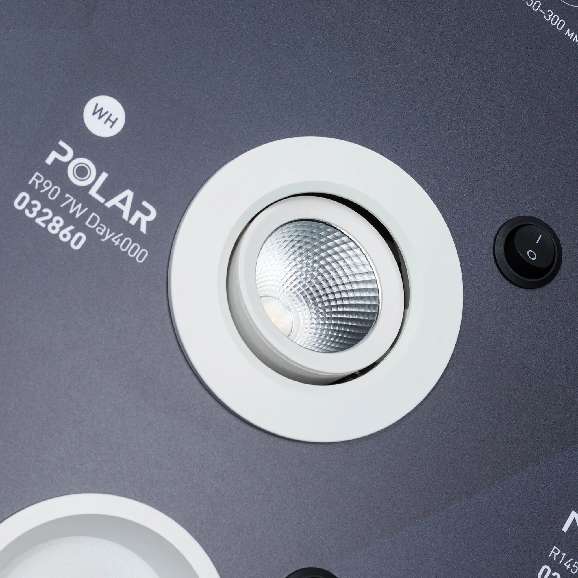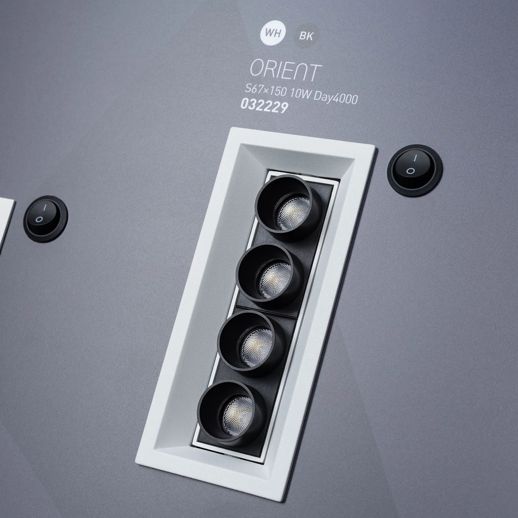 На стенде демонстрируются даунлайты разных размеров.