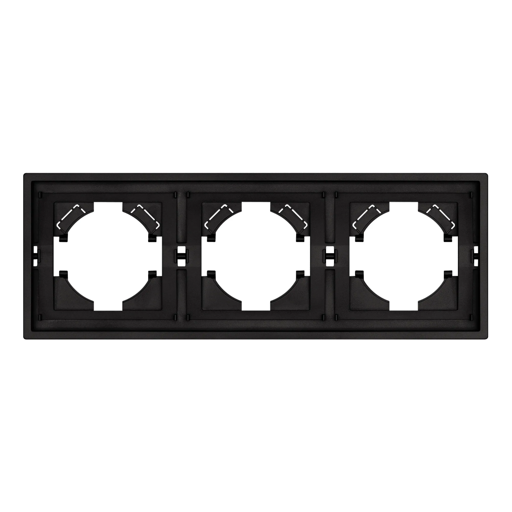 Рамка пластиковая на 3 поста, под встраиваемый механизм. Цвет - черный, с Soft-Touch покрытием. Среднего уровня герметичности IP20. Ориентация монтажа горизонтальная.