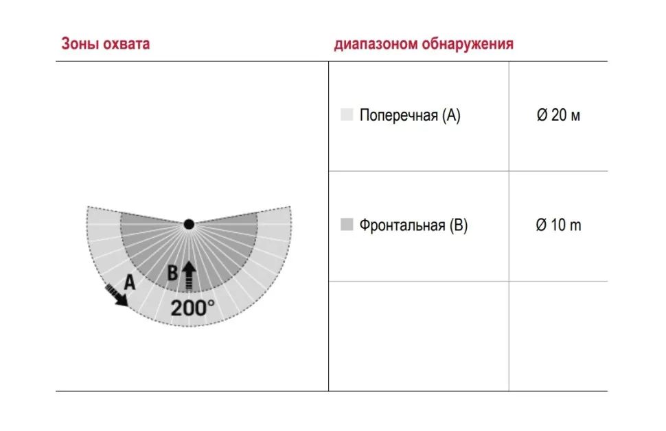 | Угол обнаружения | 200° (2 х 100°, регулируются отдельно) |